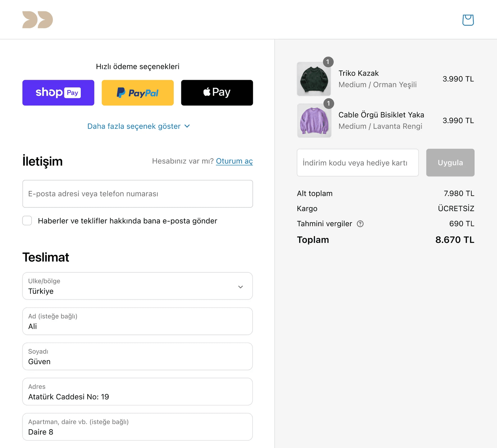 Yerli ödeme sistemi bağlantısı (iyzico, PayTR, Stripe)