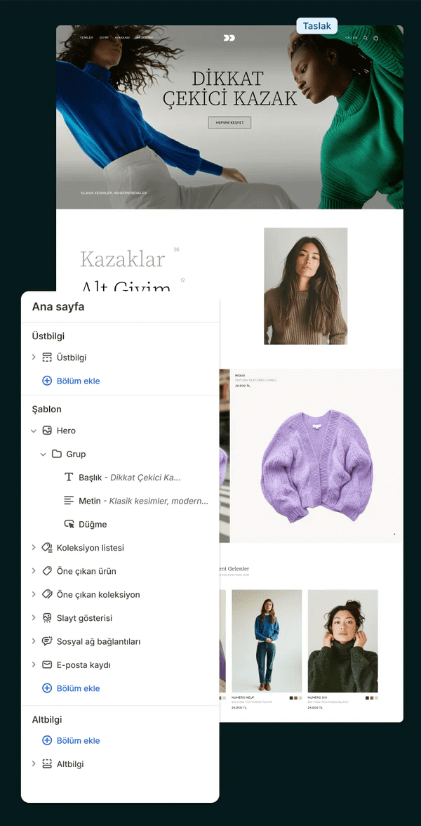 Mevcut tasarımınızı Shopify temasına uyarlıyor ya da geçiş sürecini marka yenileme fırsatına dönüştürüyoruz. Dönüşüm oranına etki eden her detayı — ürün sayfası düzeni, sepet akışı, mobil deneyim — Shopify'ın sunduğu esneklikle yeniden tasarlıyoruz.